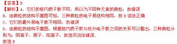 17、右图是三种微粒的结构示意图,有关它们的说法正确的是( )