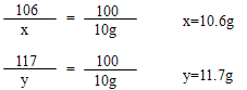 10.6g + m + 146.1g - 10g = (11.7g +m) ÷10% , m= 3.3g