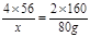 铁缓慢氧化生成Fe2O3,发生反应的化学方程式为4Fe+ 3O2 =2Fe2O3,计算生成80g Fe2O3需要铁的质量(写出计算过程)。