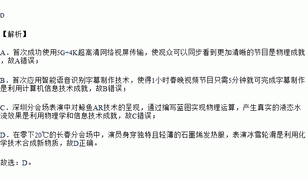 D.在零下20℃的长春分会场中,演员身穿独特且轻薄的石墨烯发热服,表演冰雪轮滑