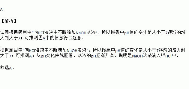 向HCl溶液中不断滴加NaOH溶液,溶液的pH随所加NaOH溶液体积的变化与下图相符的是( )