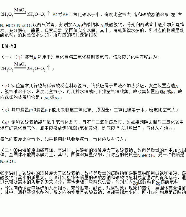 (一)下图是实验室制取气体的发生装置和气体收集装置。