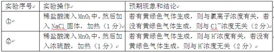 ②设计实验方案,进行实验。请在答题卡上写出实验步骤和预期现象及结论。限选实验试剂:浓H2SO4、NaCl固体、MnO2固体、稀盐酸