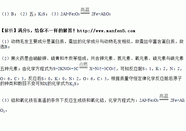 (2)黑火药是我国古代的四大发明之一,它由硝酸钾、硫黄和木炭等组成.黑火药中至少含有 种元素,黑火药爆炸时发生的反应为:S+2KNO3+3C═X+3CO2↑+N2↑,则X的化学式为 .