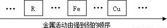 (3)根据上述的实验探究(R的活动性比Fe强),结合金属活动性(Fe的活动性比Cu强),可得出:R…Fe…Cu.