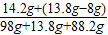 解得:x=8g,y=14.2g