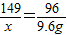 解得x=14.9 g,