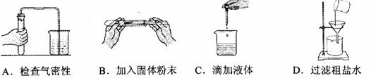 【解析】过滤粗食盐的实验漏斗口要紧贴烧杯壁,所以D不正确。