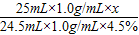 25mL×1.0g/mL×x 24.5mL×1.0g/mL×4.5%
