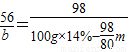 反应前后固体质量不变,即与硫酸反应消耗铁的质量等于与硫酸铜反应固体增加的质量,即:a=b