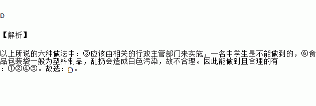 A.①②⑥ B.②③④ C.③⑤⑥ D.①②④⑤