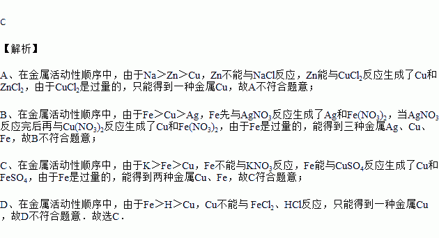 A.Zn、NaCl、CuCl2(过量)
