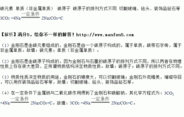 (1)从宏观组成上分析,金刚石是由_______组成的,属于________(填物质类别)。