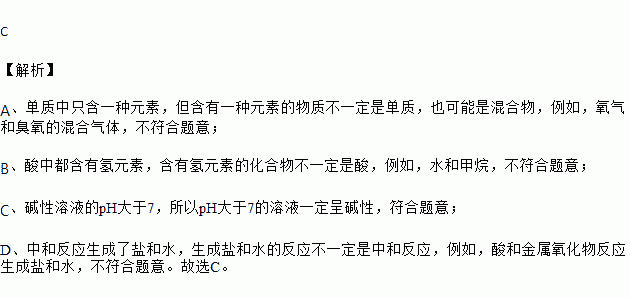 C.碱性溶液的pH大于7,所以pH大于7的溶液一定呈碱性。
