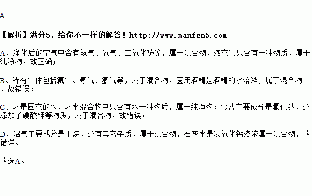 C.冰水混合物、食盐 D.沼气、石灰水