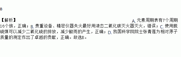 D. 我国科学院院士张青莲为相对原子质量的测定作出了卓越的贡献