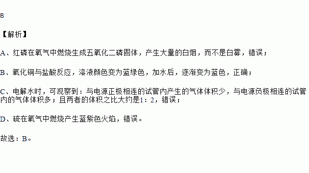 B.氧化铜与盐酸反应,溶液颜色变为蓝绿色,加水后,逐渐变为蓝色
