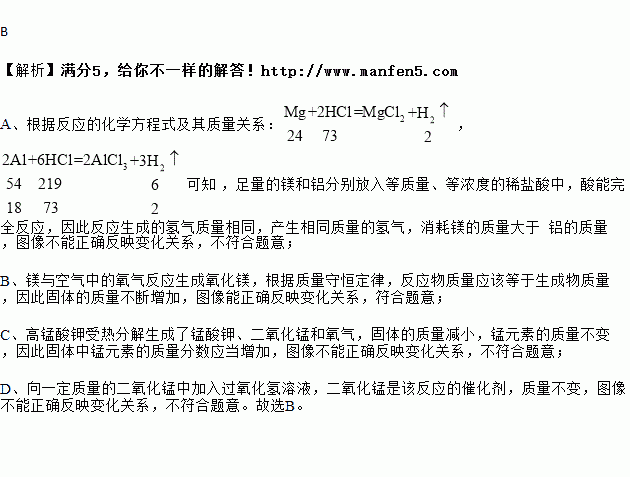 足量镁和铝分别放入等质量、等浓度的稀盐酸中
