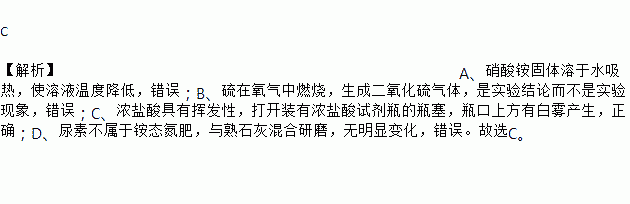 D. 将尿素[CO(NH2)2]与熟石灰混合研磨,闻到氨味