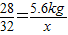 解得:x=6.4kg