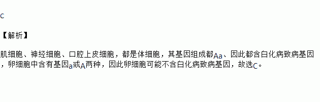 白化病是由隐性基因(a)控制的遗传病。某女子的基因型为Aa, 她可能不含该致病基因的细胞是