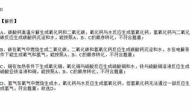 D.氢气、水、氢氧化钙