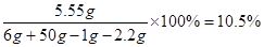 6g大理石样品与50g稀盐酸恰好完全反应(杂质不参与反应且不溶于水),生成二氧化碳2.2g。求:反应后溶液中溶质的质量分数(计算结果保留一位小数)。