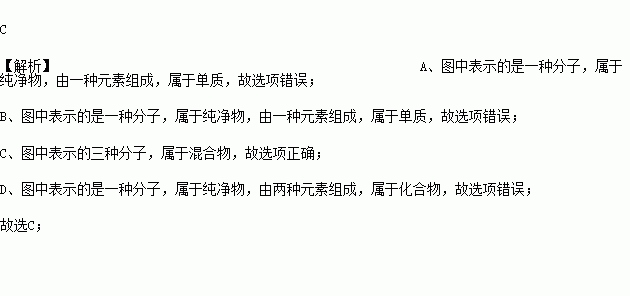 如图表示的是某分子的模型,图中“Ο”和“●”分别表示不同元素的原子,其中表示混合物模型的是( )