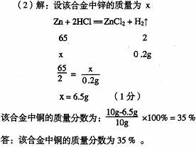 (2)求该合金中铜的质量分数。