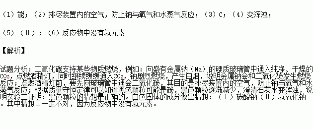 【进行实验一】如图,向盛有金属钠(Na)的硬质玻璃管中通入纯净、干燥的CO2,当观察到澄清石灰水中刚好出现浑浊时,点燃酒精灯,同时继续缓缓通入CO2,钠剧烈燃烧,产生白烟,燃烧结束后玻璃管中有黑色颗粒和白色固体生成。