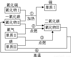 ¡¾´ð°¸¡¿·ÖÎö£ºµ¥ÖÊIΪºìÉ«¹ÌÌ壬ÔÚºìÉ«ÎïÖÊÖÐÖ»ÓÐÍÊǵ¥ÖʹÌÌ壮¶øÑõ»¯ÎïIºÍµ¥ÖÊIII¾ùΪºÚÉ«¹ÌÌ壬ºÚÉ«µ¥ÖÊÓ¦¸ÃÊÇ̼£¬¶øºÚÉ«Ñõ»¯ÎïÇÒÄܶÔÓ¦½ðÊô͵ÄÖ»ÄÜΪÑõ»¯Í£®¶øÑõ»¯ÎïIIIÄܹ»Ê¹³ÎÇåʯ»ÒË®±ä»ë×Ç£¬ÔòÑõ»¯ÎïIIIΪ¶þÑõ»¯Ì¼£®
