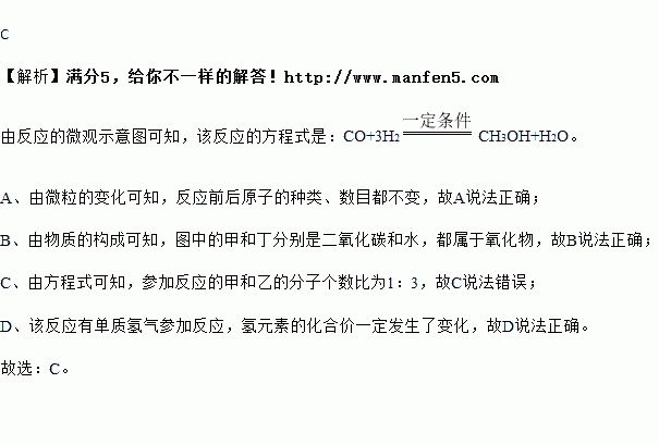 如图是甲和乙在一定条件下反应生成丙和丁的微观示意图,其中不同的圆球代表不同原子。下列说法错误的是( )