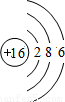 (2)因为D为硫元素,质子数,=核外电子数=16,故可画出D的原子结构示意图