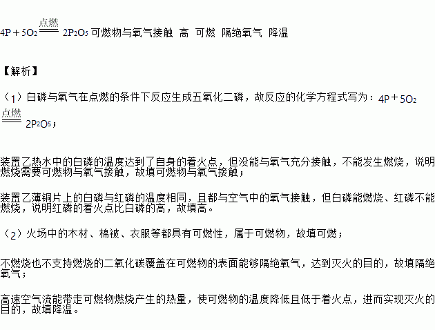 (1)如图中,装置甲热水中的白磷和装置乙薄铜片上的白磷都能燃烧,有关的化学方程式是_____;装置乙热水中的白磷未能燃烧,说明燃烧需要_____。装置乙薄铜片上的白磷能燃烧、红磷不能燃烧,说明红磷的着火点比白磷的_____。