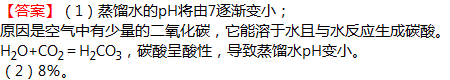 £¨1£©½«¸Õ¸ÕÕôÁó³öÀ´µÄÕôÁóˮʢ·ÅÔÚ³¨¿ÚµÄ¸É¾»ÈÝÆ÷Àһ¶Îʱ¼äºó£¬ÕôÁóË®µÄpH½«·¢ÉúÔõÑùµÄ±ä»¯£¿
