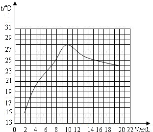 | 测得溶液温度t/℃ | 15.2 | 19.6 | 22.0 | 26.0 | 28.2 | 26.7 | 25.7 | 24.7 | 23.7 | 22.9 |