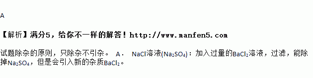 A.NaCl溶液(Na2SO4):加入过量的BaCl2溶液,过滤