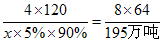 x×5%×90% (1995 - 1800)万吨=195万吨