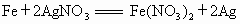 在两个烧杯中分别盛有硫酸铜、硝酸银,再向两个烧杯中各投入一块质量相同的铁块,随着反应的进行,两杯中铁块