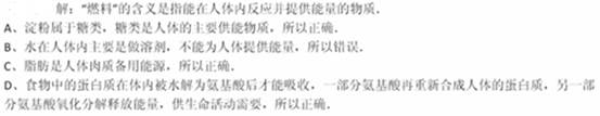 有人形象地把人体比喻为一架缓慢氧化着的“高级机器”,人体在正常生命过程中也需要不断的补充“燃料”。依照这种观点,人们通常摄入的下列营养物质中不能看作“燃料”的是