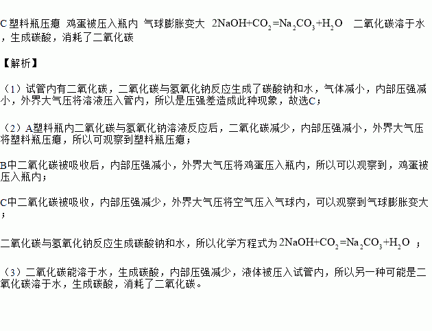 化学反应往往伴随着一些现象发生,但二氧化碳(CO2)与氢氧化钠(NaOH)的反应没有明显现象,为了通过一些现象说明二氧化碳和氢氧化钠发生了反应,某班同学分两组做了如下探究实验: