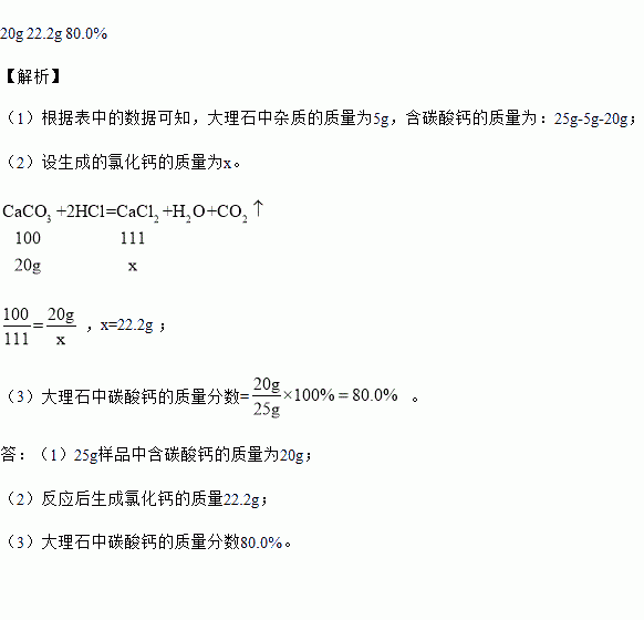 (3) 大理石中碳酸钙的质量分数_________________(保留1位小数)。