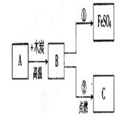 如下图A、B、C三种物质都含有同一种元素,B是单质, A、C都是氧化物,C是一种黑色固体物质,且反应②发生时可观察到剧烈燃烧,火星四射。请回答: