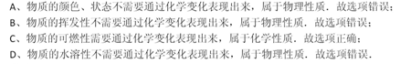 A.无色液体 B.挥发性 C.与水能互溶 D.可燃性
