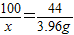 解答:解:反应生成的CO2质量=20×100 mL×10-3L/mL×1.98 g/L=3.96 g