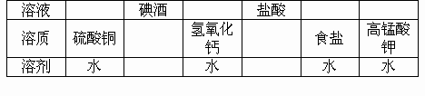 根据溶液的组成填写下表(①~④填物质的化学式)