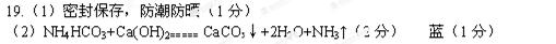 (2)将碳酸氢铵和氢氧化钙混合研磨就会发生反应,并可闻到刺激性气味。请写出该反应的化学方程式 ;闻到的刺激性气味的气体是氨气,它能使润湿的红色石蕊试纸变 色。