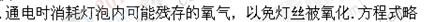 (2)在商店购买灯泡时,可发现灯泡内部的灯丝支架上附着少量红色物质──红磷,其作用是什么?