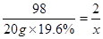 10g ×98%= x×19.6% (1分)