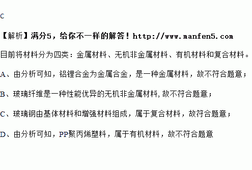 A.铝锂合金 B.玻璃纤维 C.玻璃钢 D.PP聚丙烯塑料